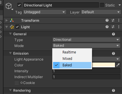 Baked Indirect, Shadowmask 모드는 특성 이해가 필요.