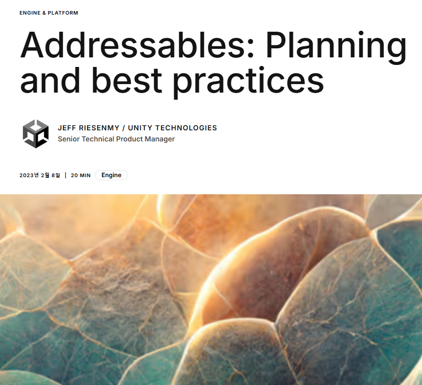 물론 가장 좋은 전략은 제작 중인 게임과 목표에 따라 달라집니다. 이 가이드는 Unity 학습 자료, Unity 매뉴얼 문서, 어드레서블에 대한 커뮤니티 중심 포럼과 함께 참고할 수 있는 참고 자료로 활용하시기 바랍니다.