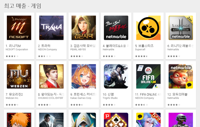 | 4월 24일 게임 매출 순위 1위~100위 (구글플레이, 애플앱스토어) (0) | 2019.04.24 |