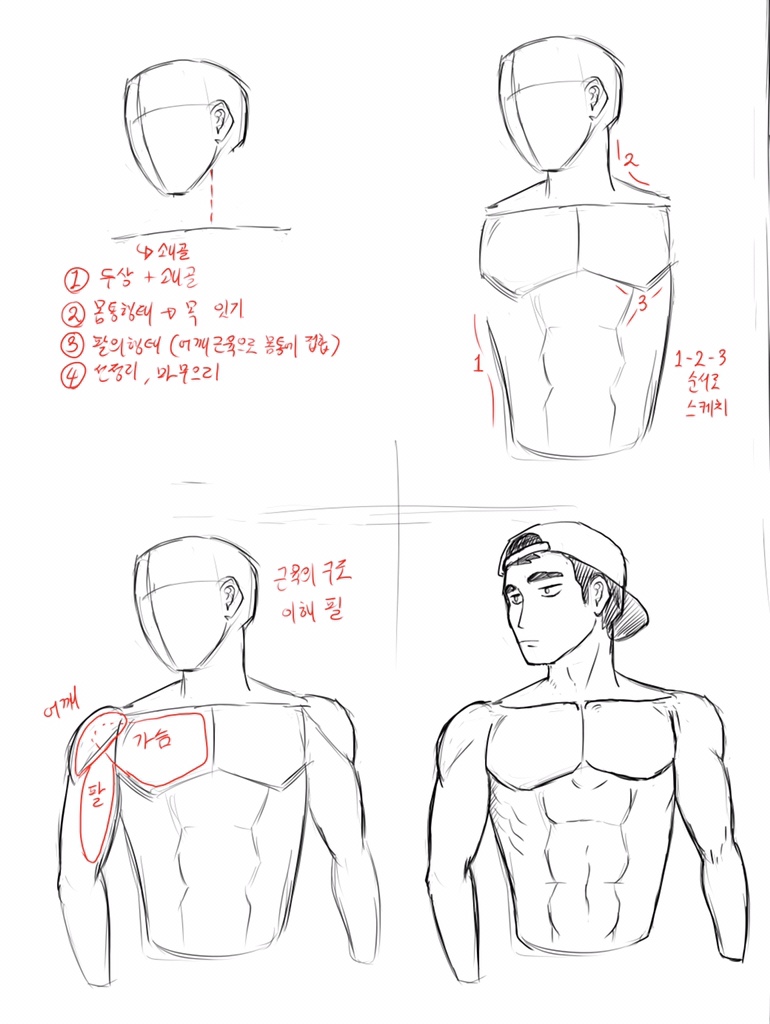 상체 그리는 순서에 대해 그렸습니다.