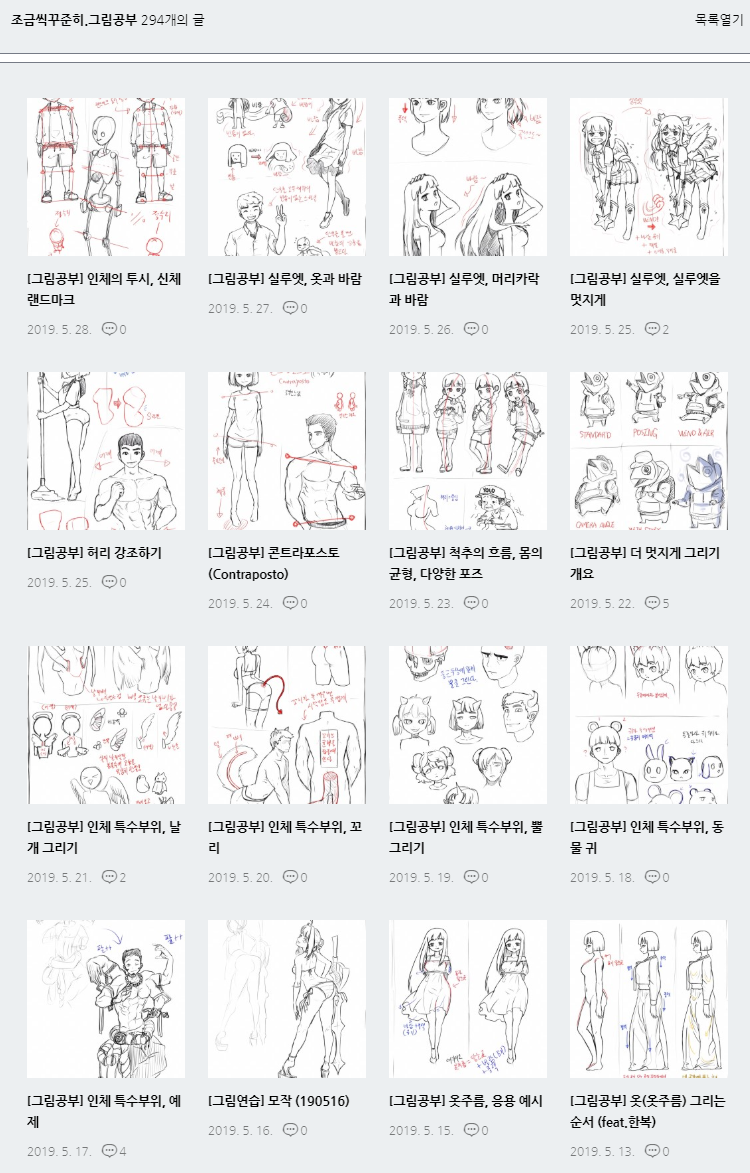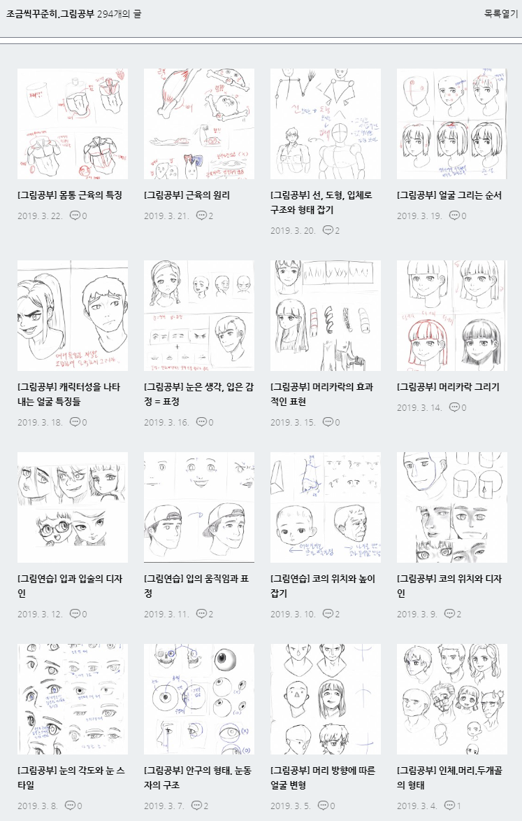 참 좋은 책입니다. 책 속에 담고있는 내용들도 이론적으로 도움이 많이 되고, 박리노님 그림들이 꽤 호감가는 스타일이라 그리는데 재밌었습니다. 아래는 그동안 그려서 올린 그림들 썸네일 모음. 썸네일은 한 장만 보이지만, 여러장 들어있는 포스트도 중간중간 있을 것 같네요.