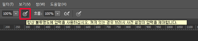 포토샵이라면 위 옵션을 활성화 시키는 것으로 불투명도를 타블렛 펜 압력으로 조절한 수 있습니다.