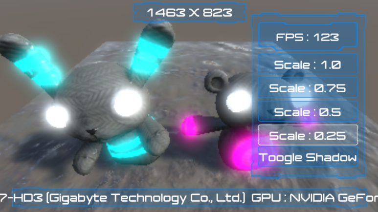GUI 해상도는 그대로 렌더링 하고, 인게임 렌더 텍스처를 줄이면서 최적화와 룩앤필을 둘 다 취하는 트릭인데요, 아래 깃헙에서 데모 프로젝트를 받을 수 있습니다.