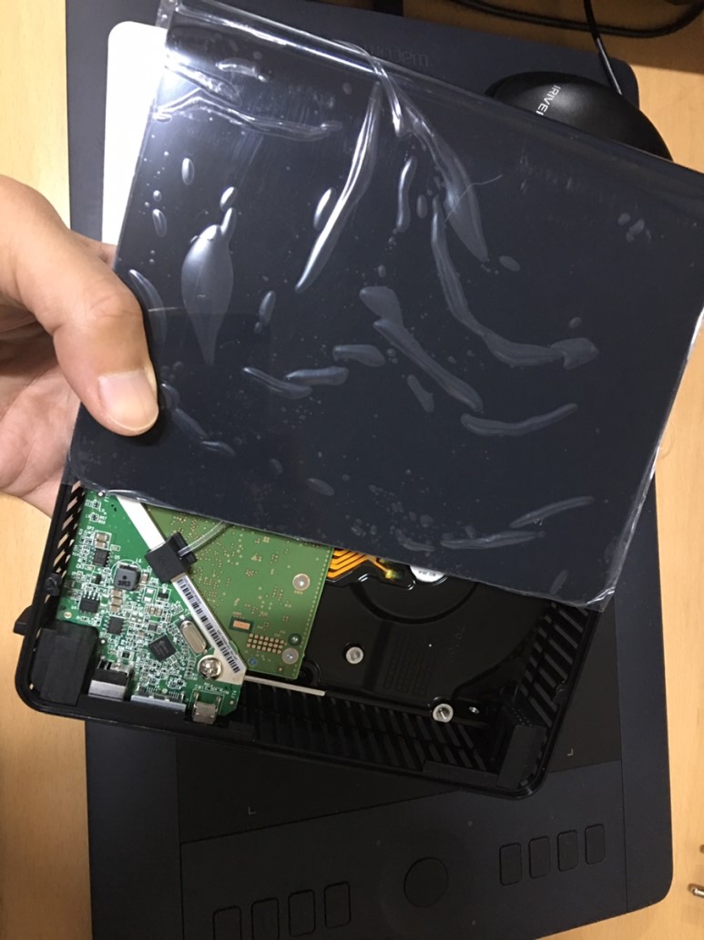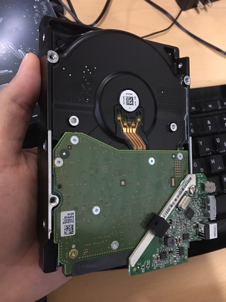 플라스틱과 고무 케이스를 벗겨주고, 외장하드로 사용할 수 있도록 하는 기판도 나사를 풀러 제거해줍니다. 이제 NAS 로 옮겨서 설치만 하면 끝.
