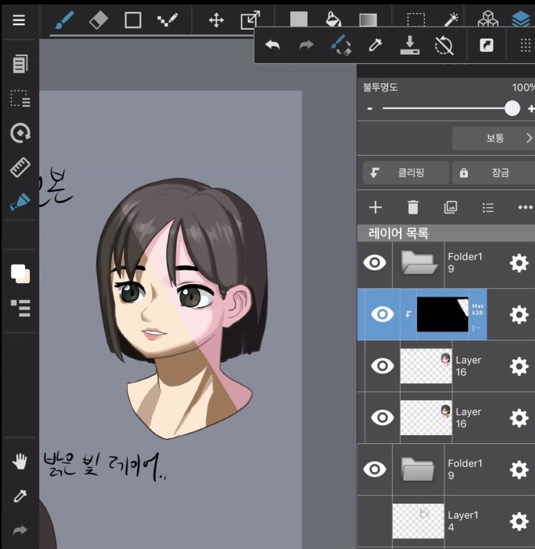 레이어마스크를 활용한 빛 표현은, 그림을 다 완성한 뒤에 림라이트같은 후사광, 직하광, 역광 표현에 효과적이라고 합니다.