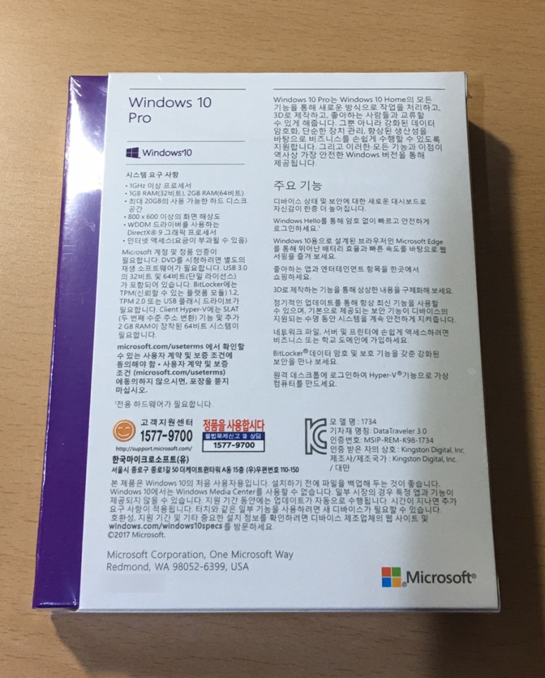 PC를 새로 조립하면서 윈도우즈 10 Pro 정품을 구입했습니다. Home Edition 을 구입하려다가, 하이퍼V 라는 가상화 솔루션도 써보면 좋을 것 같고, 원격접속도 활용하기 좋을 것 같고... 이런 이유들로 Pro 를 구입했습니다.
