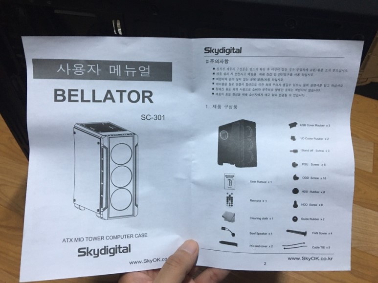 케이스 메뉴얼. 나사의 용도와 설치 방법등이 적혀져있으니 꼭 참고해서 조립하시길. 저는 나사 하나 잘못 돌렸다가 삽질 한 번 했습니다. ㅠㅠ