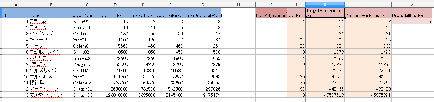 다음, 몬스터를 어느 정도의 성능 값으로 할지 목표값 할당. (TagetPerformance 열)