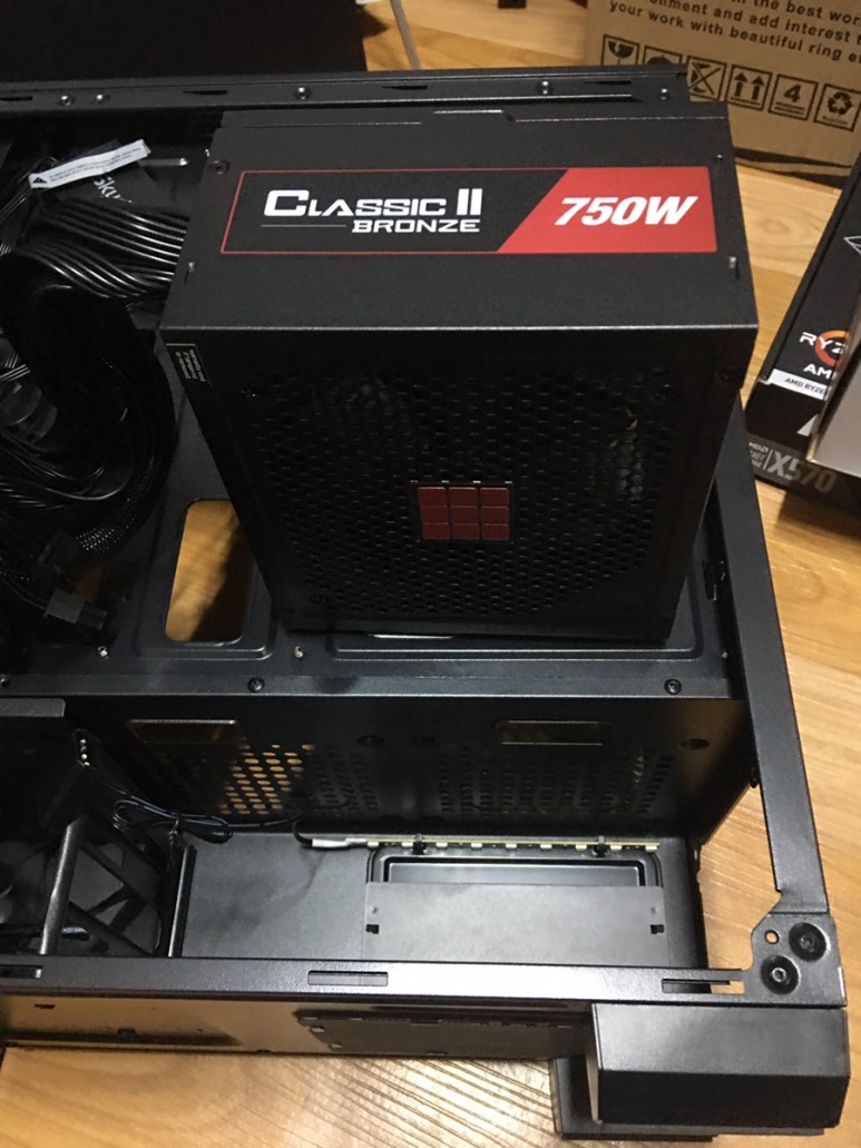 아래쪽 하얀 박스가 이번에 구입한 파워. 가성비의 마이크로닉스의 CLASSIC II BONZE 750W 모델입니다.