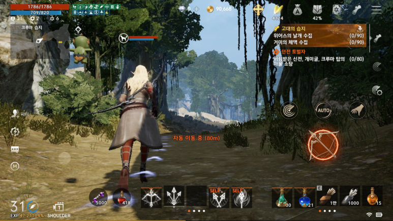 리니지2M 은 모든 자동 길찾기에 순간이동 기능을 제공하는데, 지불금액이 후반가면 점점 커집니다. 꽤 부담되는 금액이에요. 그래서 어느정도 거리(대략 500m 이내)는 주변 마을이나 저렴한 스팟으로 직접 순간이동하고, 뛰어가는 게 좋습니다.