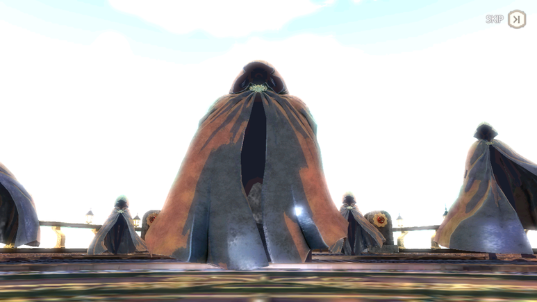 10연 가챠를 구입하면 후드 망토를 두른 10명의 실루엣이 등장합니다.