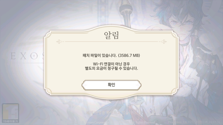 첫 다운로드 용량은 대략 3.5 GB. 요즘 비주얼 데이터가 많은 게임들은 다들 이정도는 요구하는 것 같습니다.