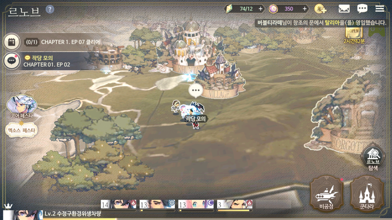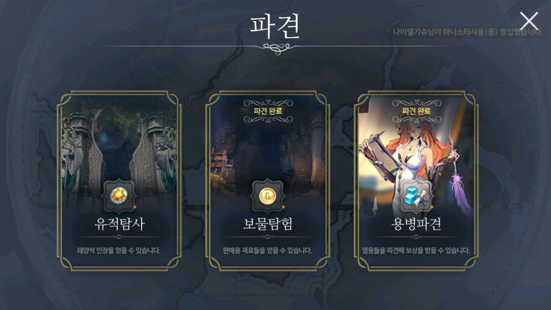 같은 장르 문맥에 따라, 캐릭터들을 셋팅하고 일정시간 뒤에 보상을 습득하는 탐색 시스템도 있습니다. 이처럼 많은 사이드 컨텐츠들이 있는데, 전체적으로 UI 뎁스가 1~2단계씩 깊은 느낌입니다. 비주얼을 강조하다보니 불필요한 반복 연출이 자주 보이기도 하고요. 이런 부분들은 UX를 해치는 만큼 개선해야할 부분으로 보입니다.