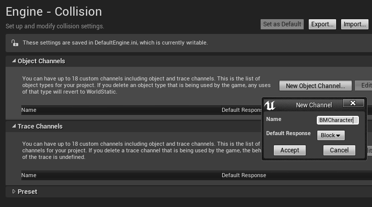 - UE4의 커스텀 콜리전 채널 만들고 작업하기