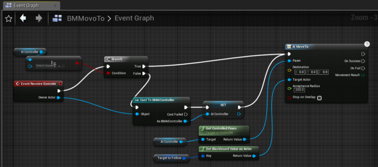 결과적으로 이런 모습의 블루프린트 로직을 만들고, 이 태스크를 비헤이비어 트리의 셀렉터를 통해 호출하면 됨.