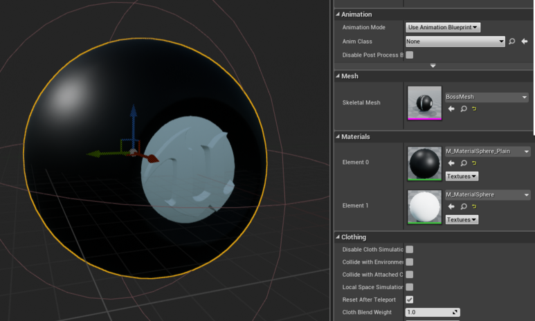 컴포넌트 : 구체 콜리전, 파티클, 메쉬, 발사체 이동