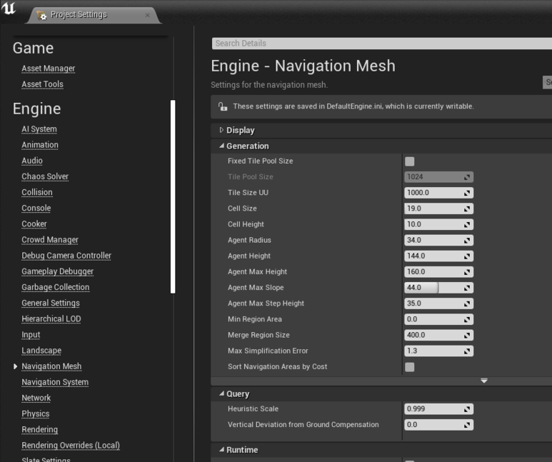Edit > Project Settings / Engine > NavigationMesh 이동