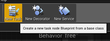 Behavior Tree 상단의 New Task 를 눌러서 커스텀 태스크를 추가한다.
