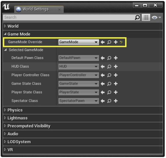 월드 셋팅에서 GameMode Override 항목에 MyGameMode 클래스 셋팅.