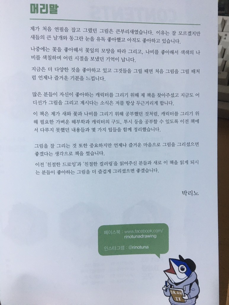 이번 책도 역시나 맘에 드네요. 부지런히 열심히 읽어보려고 합니다. 매일 조금씩 그리기는 졸업했지만, 즐기면서 많이 편하게 그리는 방법을 터득하고싶네요. 이 책을 통해 그리 되었으면 좋겠습니다.