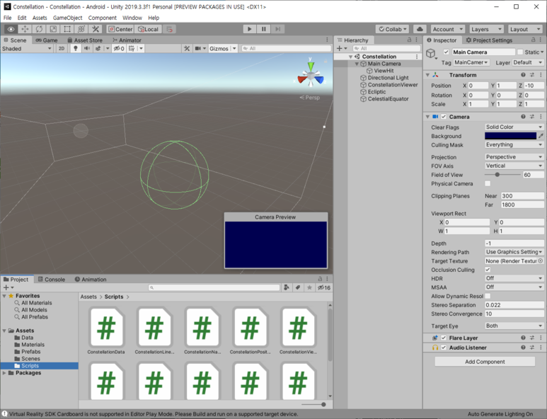 후반으로 갈수록 점점 실습 위주로 서술이 들어가는데, 1인칭 VR 슈터 게임과 별자리를 볼 수 있는 플라네타리움 앱 두 개를 완성해볼 수 있는 구성입니다. 분량 배분도 고루 분포돼있어서 구성도 맘에 듭니다.