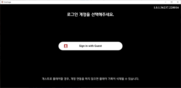PC버전 연동을 위해 제일 아래에 Sign in with Guest 를 클릭합니다.