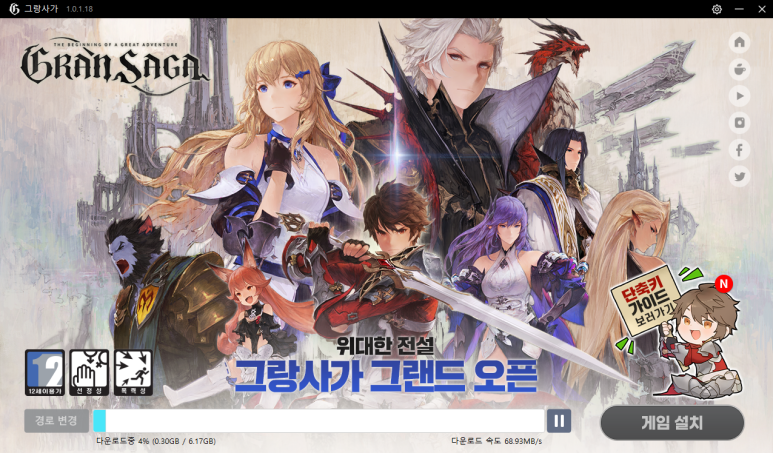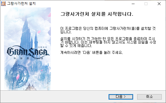 여기까진 런쳐를 설치했고, 이제 런쳐를 이용해서 실제 그랑사가 PC판을 설치합니다.