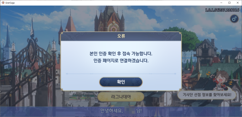 저는 제 명의 스마트폰 문자 인증으로 본인 인증 완료. 이제 그랑사가 PC버전으로 이동해서 진짜로 시작!