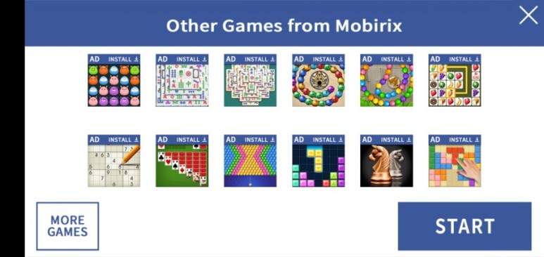 MORE GAME 을 누르면 나오는 화면. 역시 mobirix 의 게임들을 여럿 보여줍니다. 클릭하면 구글플레이 설치 페이지로 연결되네요.