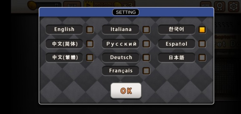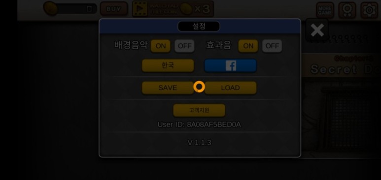 챕터 선택화면에서 톱니 모양을 눌러 옵션창을 열 수 있습니다.