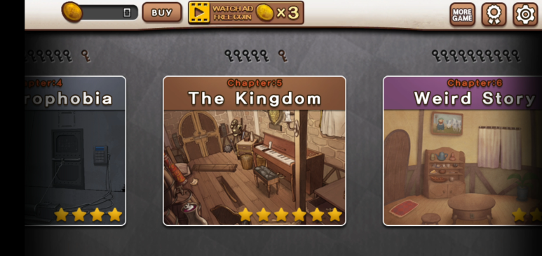 챕터버튼 위에 있는 열쇠 개수가 스테이지 개수.