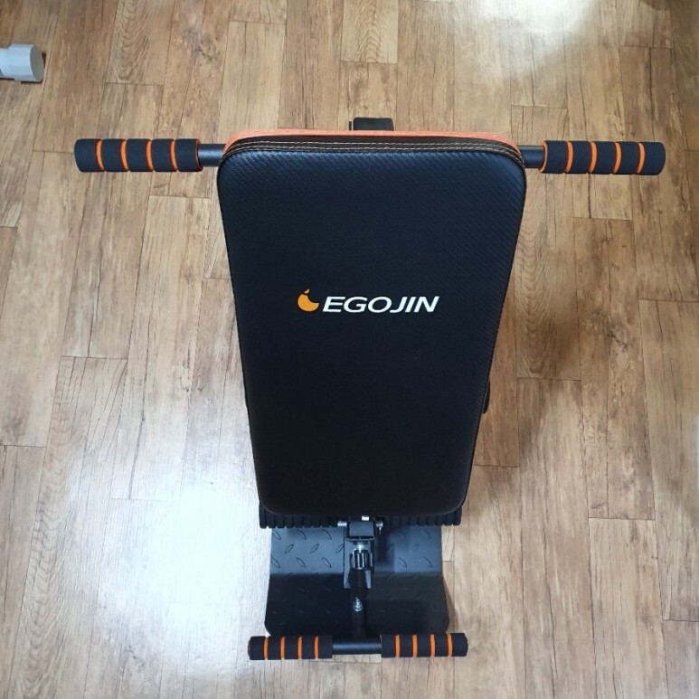조립 끝. 벤치 형태로 조립이 끝난 모습입니다. 윗몸일으키기(싯업)을 기본으로 할 수 있는 모습. 벤치 형태로 할 수 있는 다양한 운동도 소화할 수 있습니다.