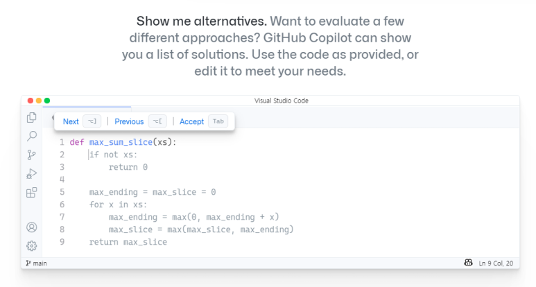 AI 페어 프로그래머라는 카피로 유명한 코파일럿.