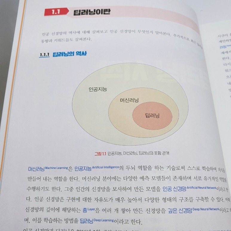 그림과 키워드 강조를 통해 머신러닝부터 딥러닝까지의 기초 개념을 이해하기 쉽게 서술하는 것으로 1장을 시작합니다.