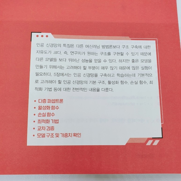 이 책은 딥러닝이라는 기술적인 분야를 다루는 서적임에도 내부 디자인에 신경을 많이 썼습니다. 본문 역시도 중요한 키워드나 개념들은 모두 폰트 컬러로 강조해두어서 가시성과 가독성이 뒤어납니다. 내용과 용어들이 쉽지 않기 때문에 편집 과정에서 이런 부분에 더욱 신경을 많이 쓴 것 같습니다.