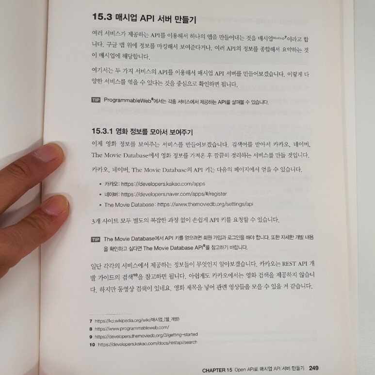마지막으로, 매시업 응용 방향성까지 제시하면서 책 본문을 마무리 합니다. 여러 Open API 를 활용해서 파이썬으로 빠르게 실용적인 다양한 애플리케이션을 만들면 도움도 되고 재밌을 것 같습니다. 이 책이 나온 이후로 몇년이 흘렀는데, 그동안 Open API 를 활용해 새로 만들어진 서비스도 아주 많을 것 같습니다. 파이썬으로 만들어지지 않았더라고 그 활용 방향은 동일하기 때문에 이 책과 파이썬으로 찍먹 해보기 좋을 것 같습니다.