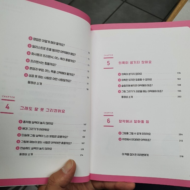 처음부터 주욱 읽어도 좋지만, 목차를 열어서 그 대답이 알고싶은 부분을 펼쳐서 읽으면 됩니다. 유튜브를 오래 해서 그런지 챕터 제목과 소제목 뽑는 솜씨가 보통이 아닙니다. 하나하나 다 읽어보고 싶은 내용들이 가득. 저는 개인적으로 2챕터부터 먼저 봤습니다. 읽다보면 재밌어서 결국 다 읽게 되는 책.