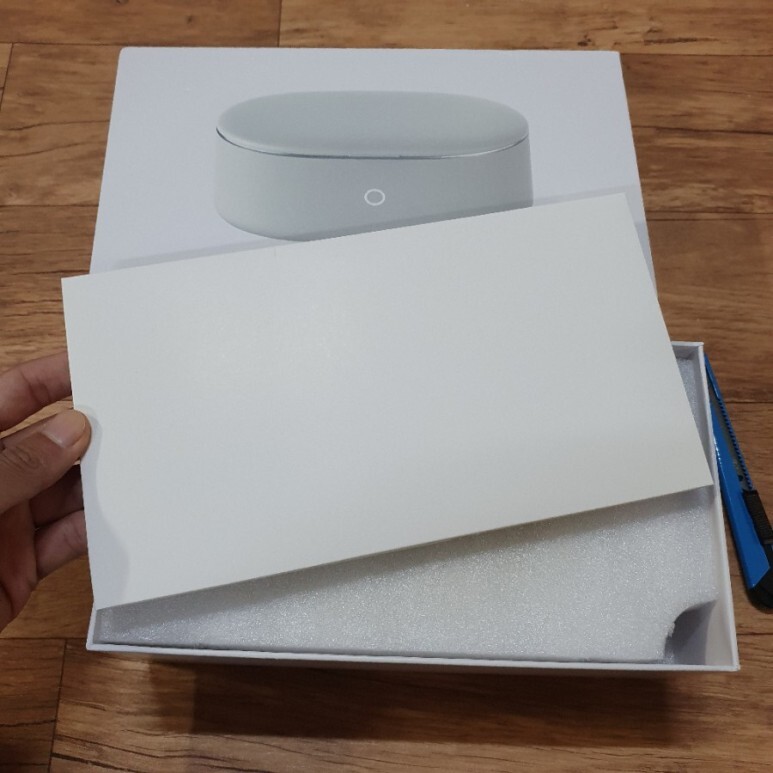 상단에 놓여있는 설명서. 묘하게 애플 포장 감성을 따라가는 듯한 구성. 특별한 정보나 구성품을 없습니다. 헝겊은 쓸만한 것 같으니 따로 보관해둡니다.