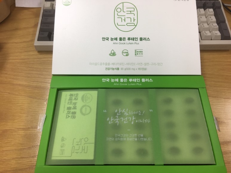 지난번 비타민C 포스트에 이은 두 번째 건강보조제 시리즈, 안국 루테인입니다. 뭔가 이런 걸 자주올리는 느낌인데, 사실 비타민제랑 루테인 빼곤 따로 더 먹는 건 없습니다. 이거라도 안 먹으면 안될 것 같아서 꾸역꾸역 챙겨먹는 중입니다.
