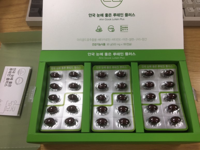 안국 루테인 플러스는 다양한 연구로 증명된 눈에 좋다는 성분들을 모아서 만든 눈 영양 보충제로 잘 알려져 있습니다. 컴퓨터 게임을 개발하는 만큼 장시간 눈을 사용하는 관계로 특별히 신경써서 챙겨먹고 있습니다. 특별히... 신경쓴다곤 했지만 사실 이걸 먹는 것 말곤 신경을 잘 안쓰는 것 같아 잠시 반성.