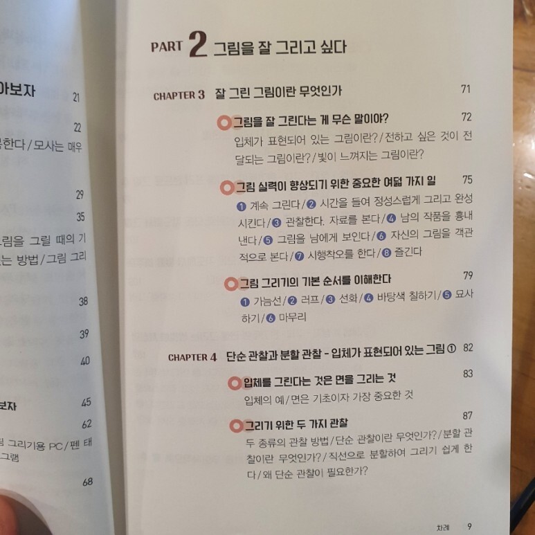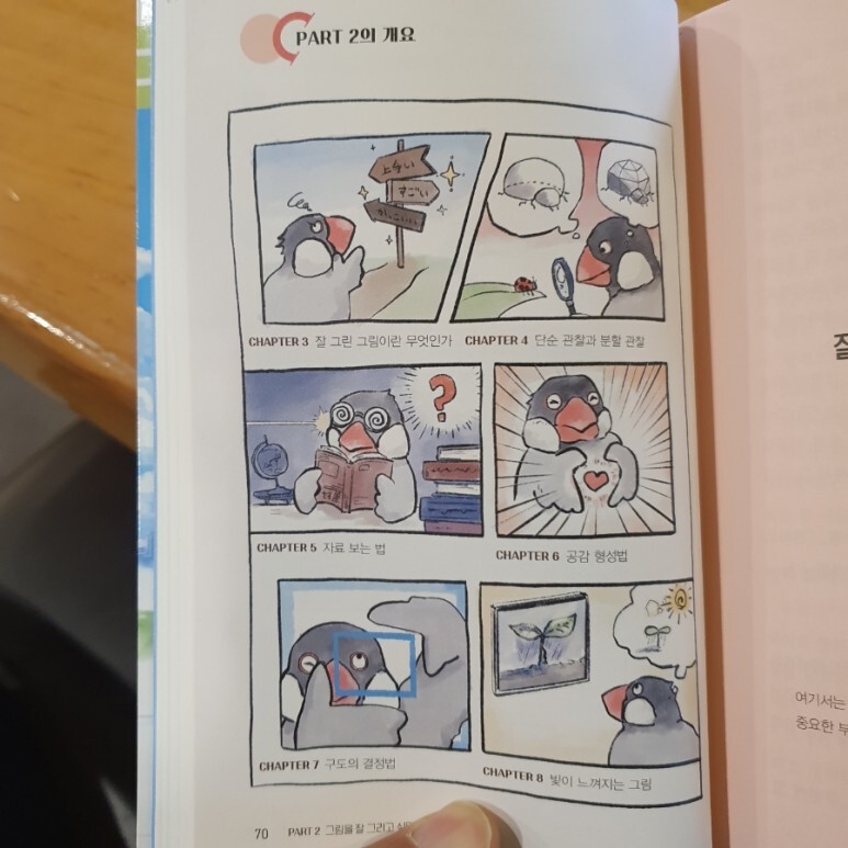 파트1에서 그림 그리는 것에 재미를 붙이고 시작할 수 있게 되었다면, 파트2 에서는 이 책의 제목처럼 "그림 잘 그리는 법"을 본격적으로 따라가게 됩니다.