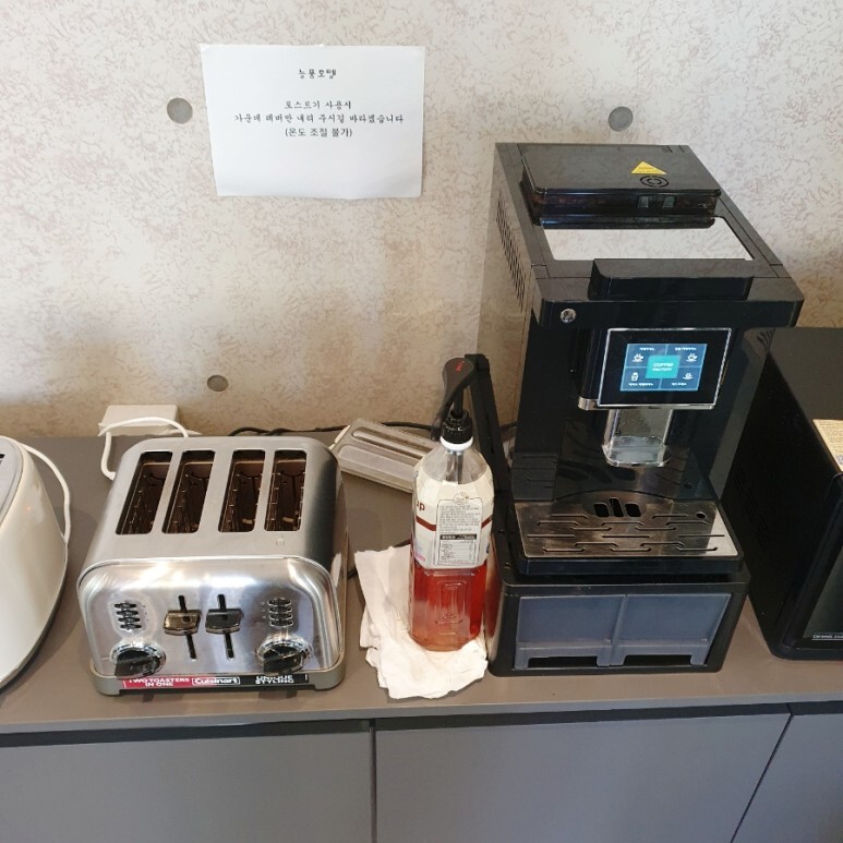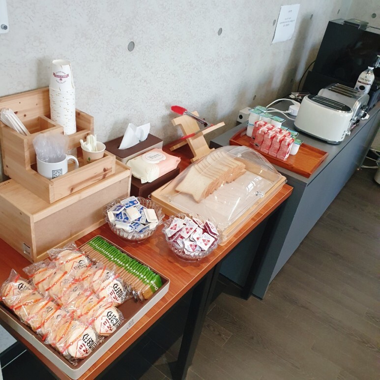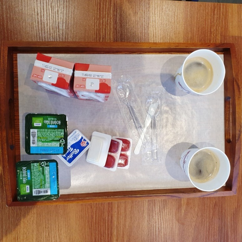 다음날 아침. 늘품호텔 아침 조식도 잘 챙겨 먹었습니다. 조식 시간은 아침 8시부터 9시 30분 정도까지 였던걸로 기억합니다. 1층 로비 옆에 위치한 카페같은 공간에서 조식 서비스를 이용할 수 있어요. 묵었던 투숙객 분들이 간단하게 조식을 먹기위해 많이 내려왔더군요.