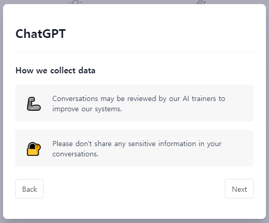 ChatGPT 의 대화 내용은 시스템 개선을 위해 AI trainers 들이 검토할 수 있습니다. 민감한 개인정보 등은 절대 입력하지 않도록 하라는 이야기도 있고요. good 혹은 unhelpful 피드백으 해주면 시스템 최적화에 도움이 된다고 합니다. 디스코드 채널도 운영하고 있군요. 영어만 허용된 디스코드 서버인 점 유의.