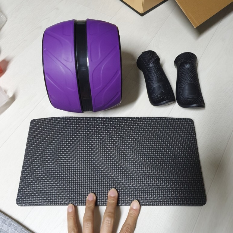 이런 모습. 손잡이에 살짝 사선으로 그립하도록 가이드 형태를 띄고 있어서 손목에도 무리가 없고 아주 만족스럽습니다. 하루에 10개씩 3세트 처천히 하니 복근은 물론 상체 전면부에 자극도 충분히 오고 허리에도 큰 부담이 없는 것 같아 좋습니다.