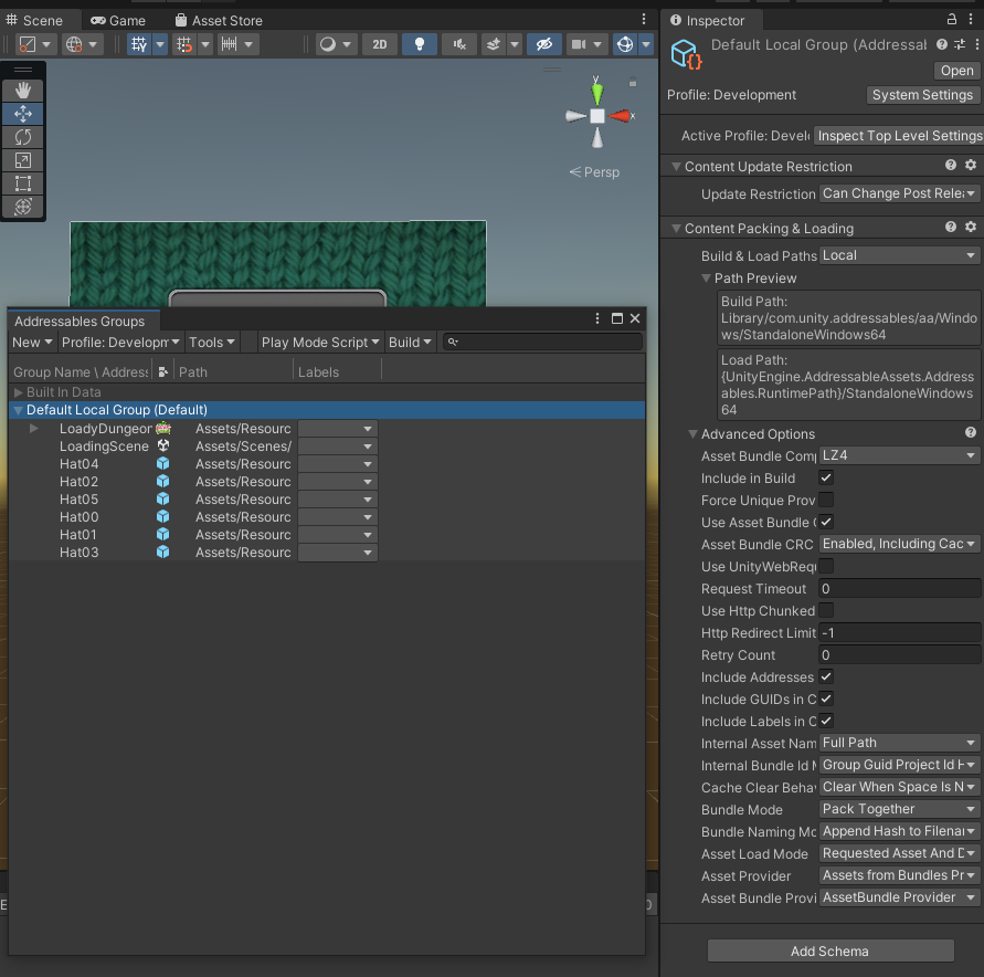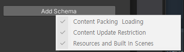 이 스키마는 빌드 스크립트에 이 그룹의 에셋을 Addressables 콘텐츠로 전환하는 방법과 애플리케이션이 콘텐츠를 읽는 방법을 알려주는 역할.