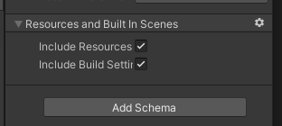 Resources and Built In Scenes 우측에 톱니바퀴 모양 아이콘을 클릭해서 스키마를 제거할 수도 있음.