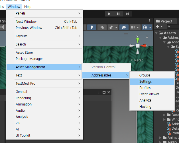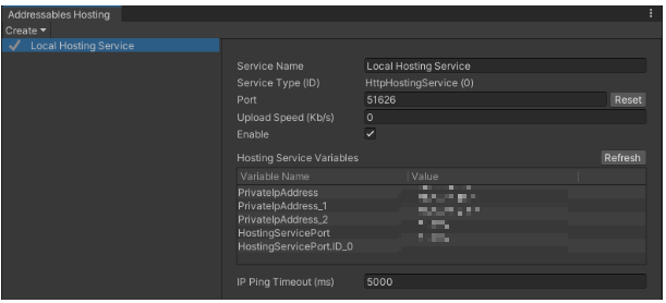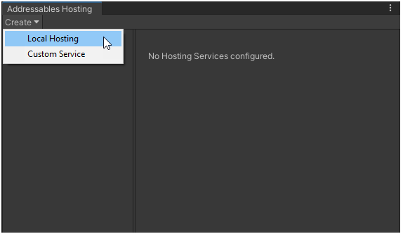 아래 메뉴로 Addressables Hosting 창 열기.