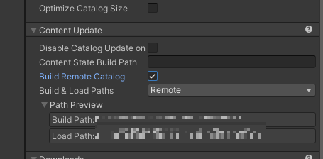 이렇게 하면 어드레서블 콘텐츠가 빌드될 때 애플리케이션이 Unity 에디터가 호스팅하는 위치로 원격 콘텐츠를 빌드하고 게임이 Unity 에디터에 모의(Mock) CDN으로 요청.