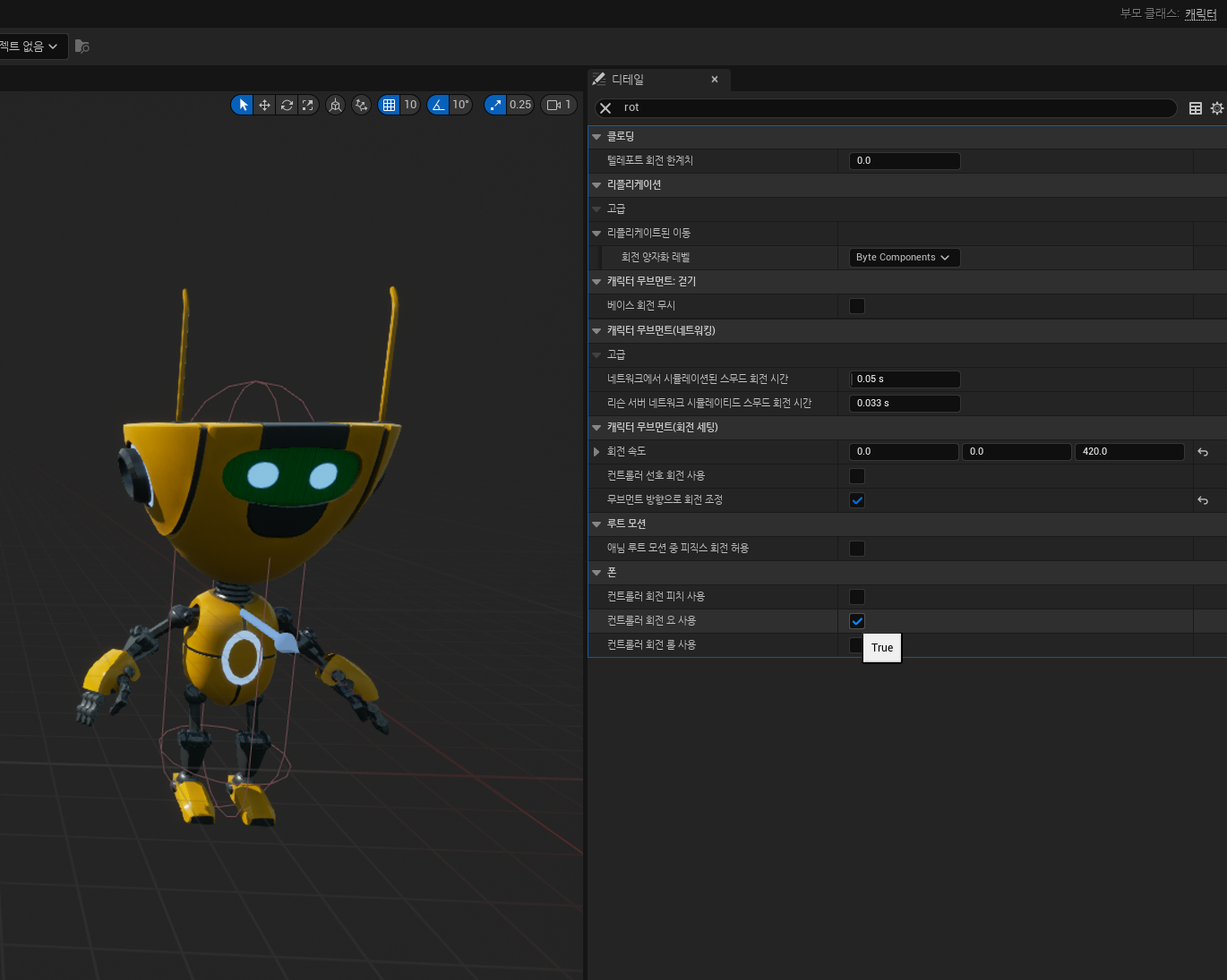 언리얼 엔진(Unreal Egnine) 5 에서, "무브먼트 방향으로 회전 조정"(bOrientRotationToMovement) 값이 True 인 경우에도 캐릭터가 회전하지 않고 처음 회전값으로 돌아가는 문제.