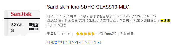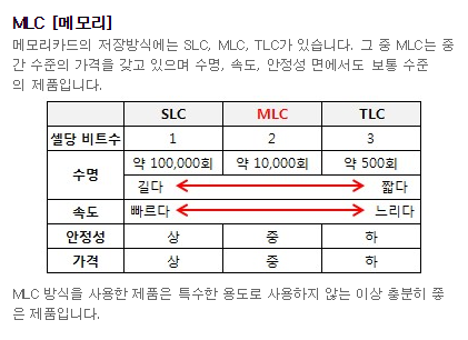 그래서 블랙박스같이 안정성이 필요한 기기에서는 MLC 가 가장 합리적이라고 합니다. 제가 구입한 것도 MLC 타입이고요.